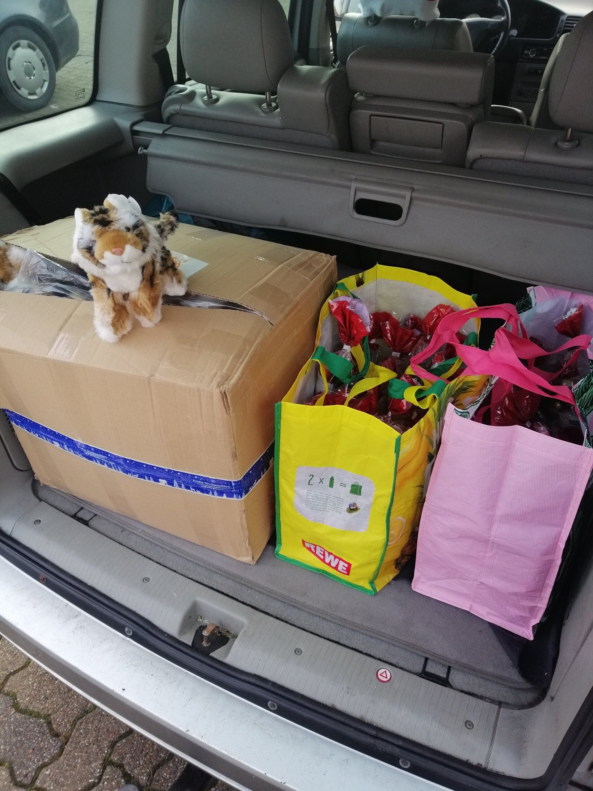 Nachdem der 07.12.2020 in Salzgitter Lebenstedt schon ein voller Erfolg war, stand als nächstes Datum der 12.12.2020 fest. Zu diesem Datum hatte Gianluca uns von Hand in Hand auch dazu eingeladen und wir folgten selbstverständlich gerne dieser Einladung. Aber natürlich nicht ohne Geschenke. Also packten wir 50 süße Plüschtiger und etliche Schokoladen Tüten ein und machten uns auf den Weg.
